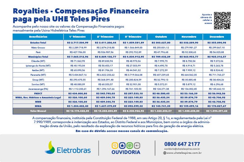 Dezembro 2023 – Compensação Financeira UHE Teles Pires – Jacareacanga/PA e Paranaíta/MT