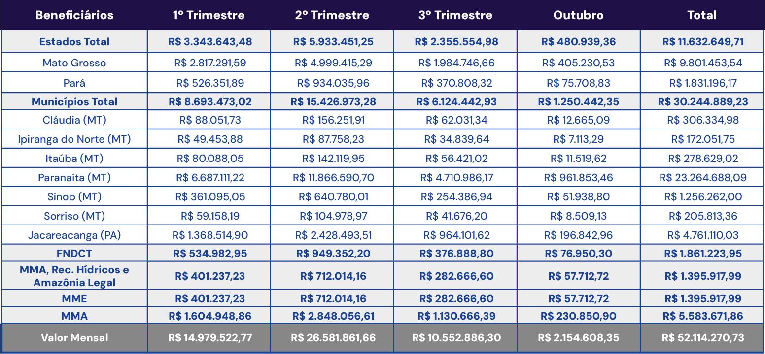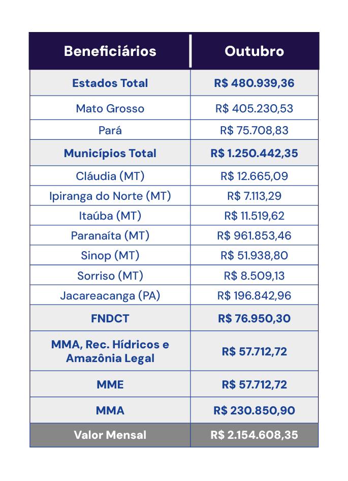 Outubro 2025 - Compensação Financeira UHE Teles Pires - Jacareacanga/PA e Paranaíta/MT